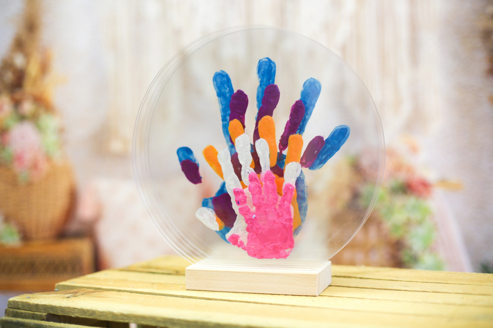 Notre kit d'empreinte couleur nacré offre une finition élégante et lumineuse, idéale pour sublimer vos souvenirs de famille et créer un souvenir décoratif unique.